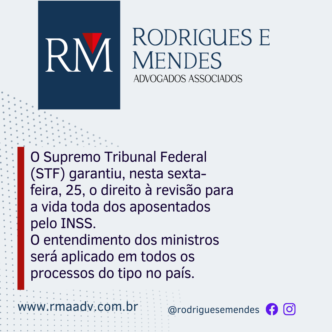 O Supremo Tribunal Federal (STF) garantiu, nesta sexta-feira, 25, o direito à revisão da vida toda de aposentados do Instituto Nacional do Seguro Social (INSS). A medida é uma ação judicial que assegura que o trabalhador que se aposentou após a reforma da Previdência de 1999 tenha direito ao melhor benefício. Isso porque todas as contribuições previdenciárias que o segurado tenha feito...Veja Mais